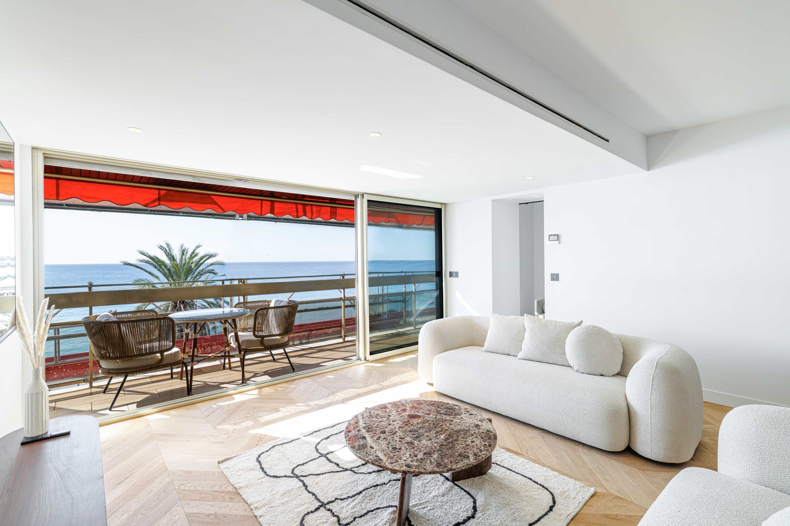 Sur la célèbre promenade des anglais à Nice, beau 3P de 114m2 entièrement rénové en 5e étage d’un immeuble de standing.